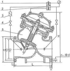 1、压力表2、导阀3、过滤器4、流量调节阀5、主阀