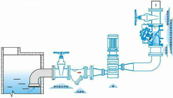 本阀门安装在水泵出口端,顺序实现缓慢开启、全开、速闭、缓闭等功能。