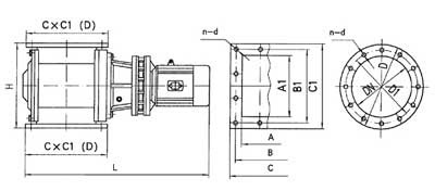 A1×A | B1×B | C1×C | DN | D | D1 | H | L | n-d | 传动功率型号 | 功率KW | 卸灰能力 m3/h | 重量kg |